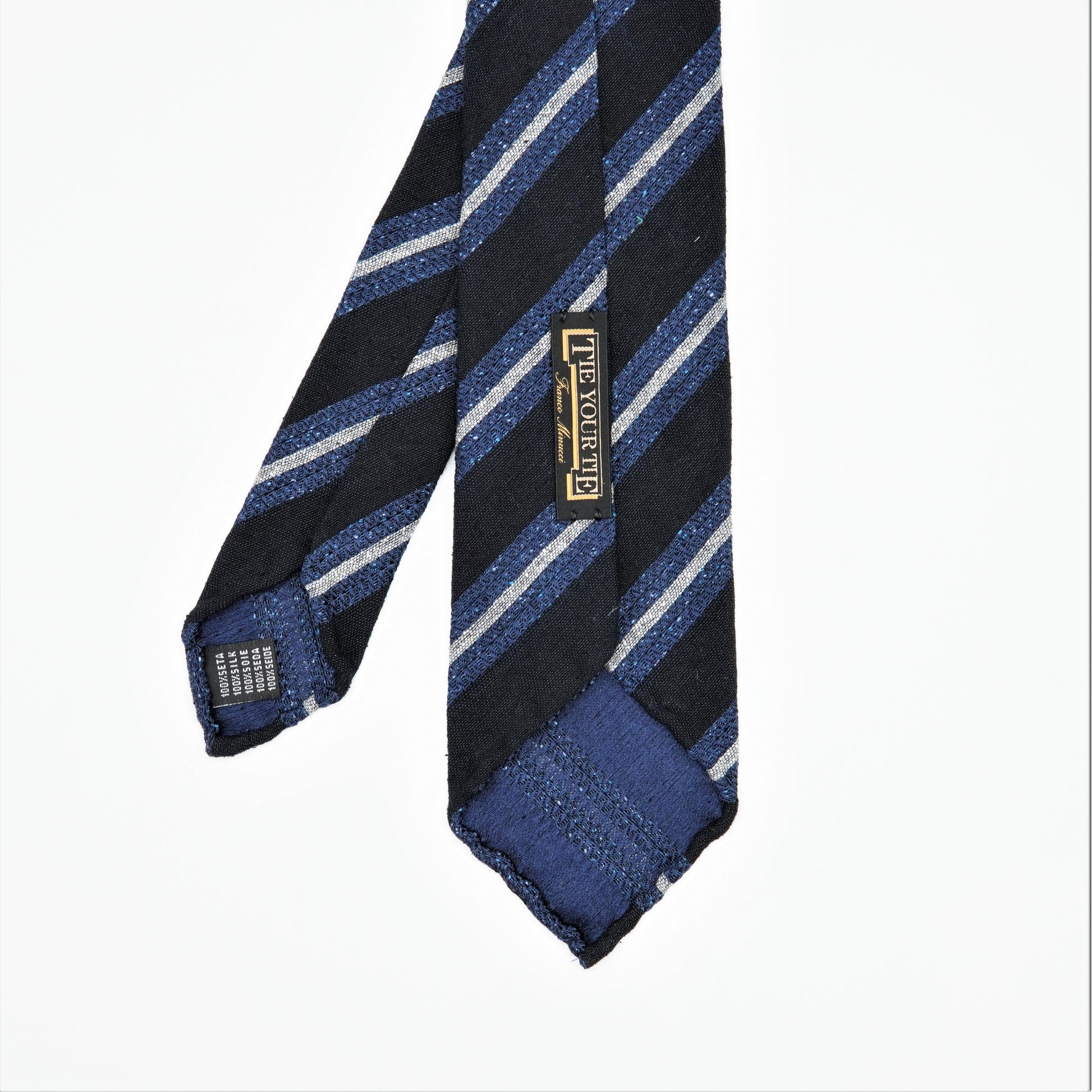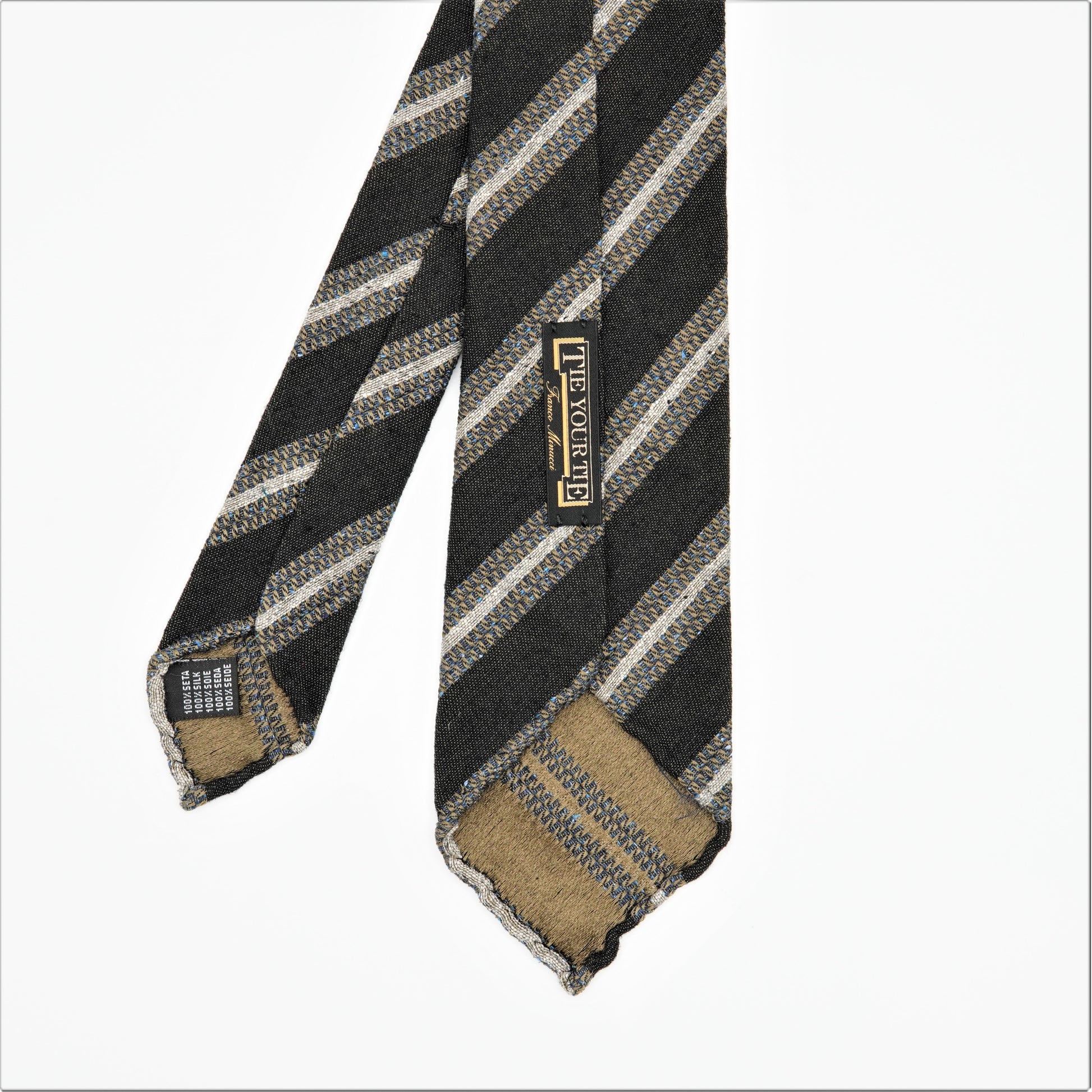 TIE YOUR TIE (タイ ユア タイ)イタリアで行われる世界最大級のメンズプレタポルテの見本市PTTI UOMO で "羅針盤"といわれたフランコ・ミヌッチ氏が1984年にイタリア、フィレンツェにオープンしたセレクトショップ「TIE YOUR TIE-タイユアタイ」彼の美意識によってセレクトされたアイテムたちはオリジナリティにあふれ、上質で個性的な紳士服がラインナップされています。英国の未整理風生地です。通常のシルクジャッガードに比べて素朴な雰囲気があり、紡毛系のジャケット、スーツに相性抜群です。